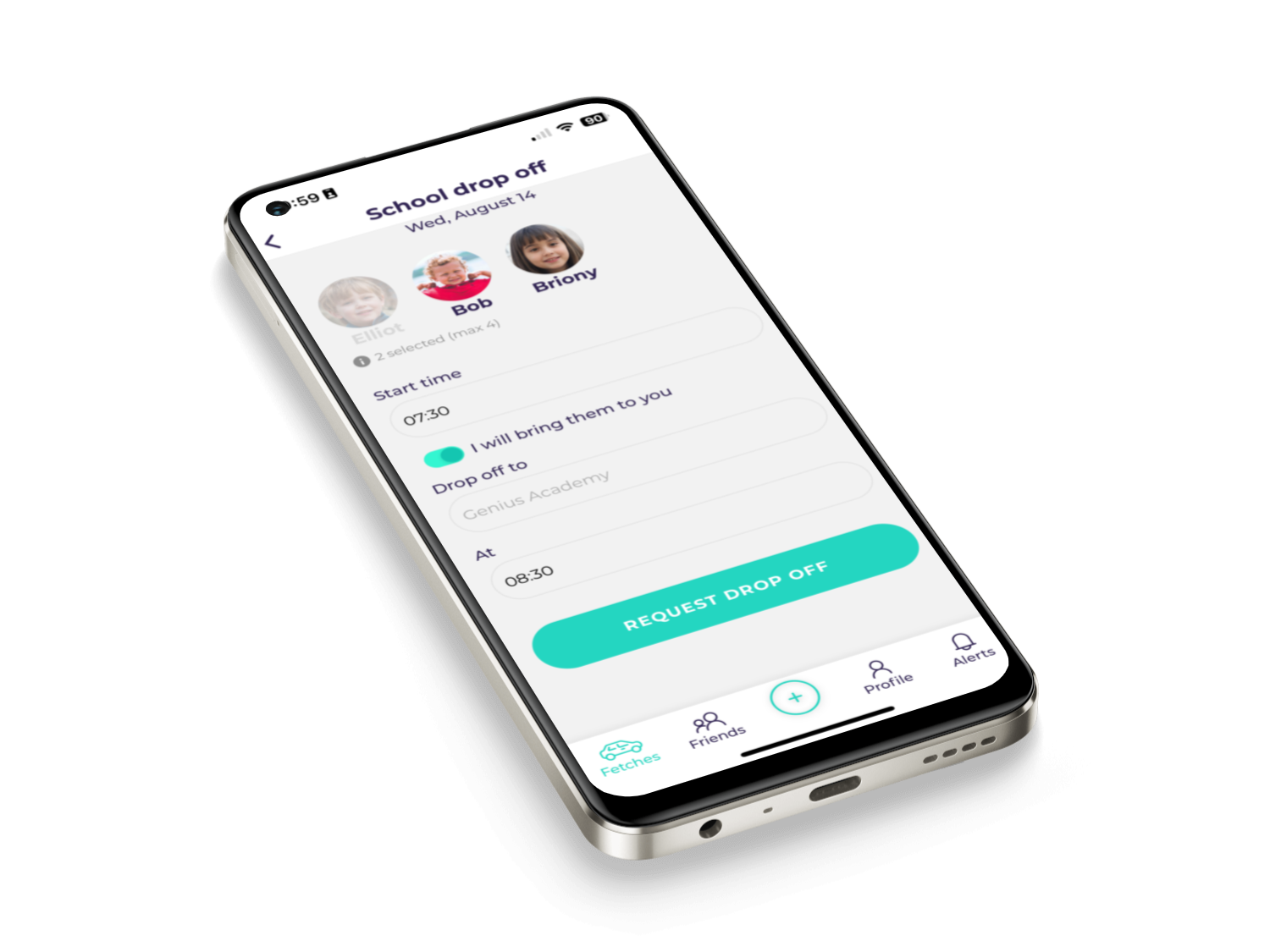 You can create a school drop-off request whenever you need help with the morning school run. Fetching makes it easy to ask for help and return the favour when your friends need it.